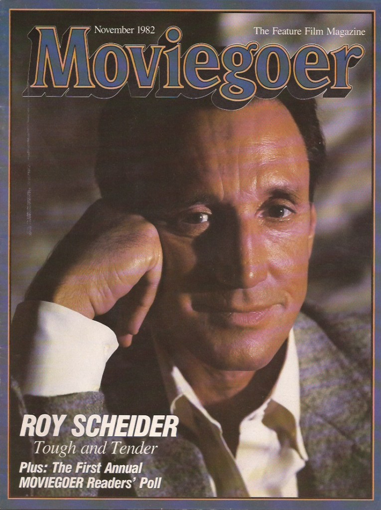 Still, I regret that I had to piss off Roy Scheider. If I run into him in the hereafter (he died in 2008), I will offer my hand and say, “Sorry about that Moviegoer cover, Mr. Scheider”–and then duck.